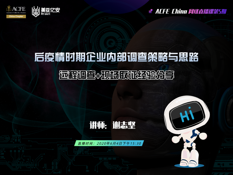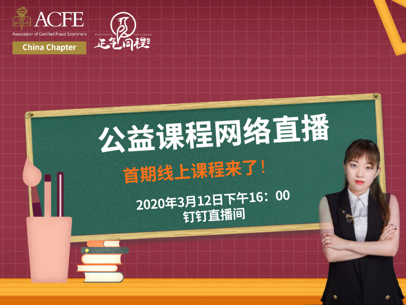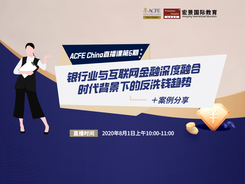 ACFE China联合宏景国际教育,共同推出话题为“银行业与互联网金融深度融合时代背景下的反洗钱趋势”直播活动,2020年8月1日(周六)上午10点,欢迎大家进入到钉钉直播间参与互动。...