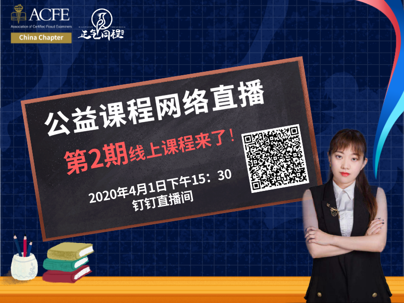 4月1日下午15:30-16:30,崔颖老师《内控监察体系的华丽变身——如何打造企业内控的“自我营销”》,ACFE China钉钉直播间,与您不见不散!...