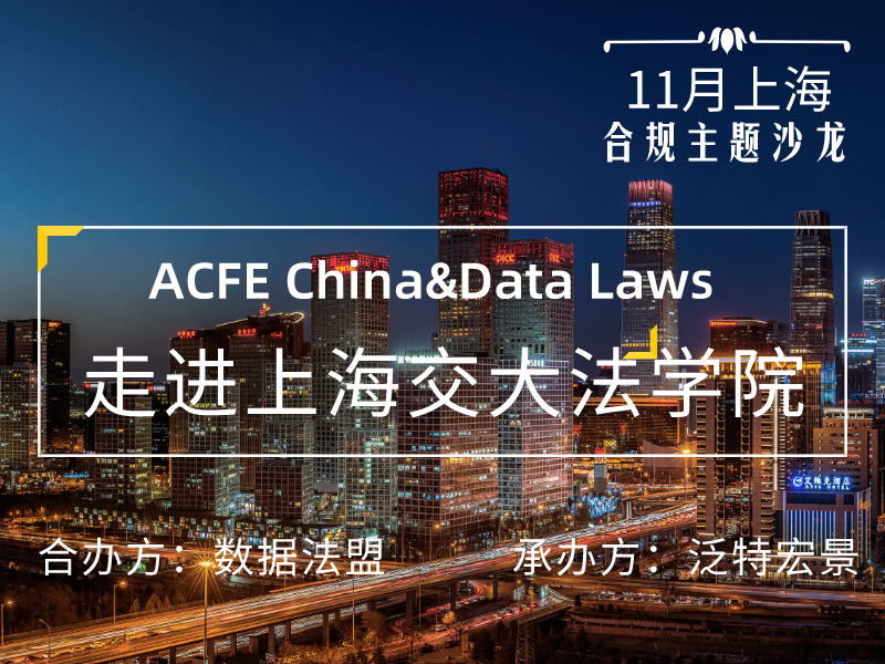 本次ACFE CHINA 将再次联手数据法盟,在上海交大凯原法学院举办11月的“合规”主题沙龙活动...