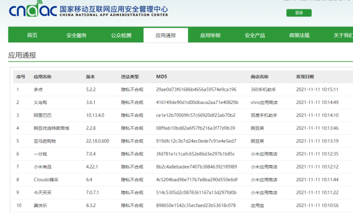 据国家移动互联网应用安全管理中心“双11”期间通报:12款应用存在隐私不合规行为。